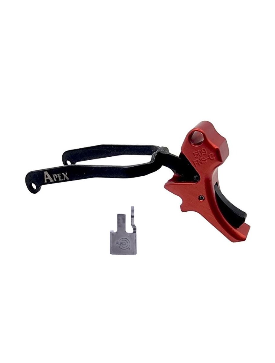 Specs and fitment: This curved trigger version is designed exclusively for the FN 509 series. It includes the trigger shoe, a polished sear, and all necessary springs. The sear you receive may differ in appearance from the product photo — if it carries the Apex laser-engraved logo, it has passed all required processes and is correct. The trigger itself is manufactured from anodized aluminum, available in Black, Red, or Flat Dark Earth (FDE).