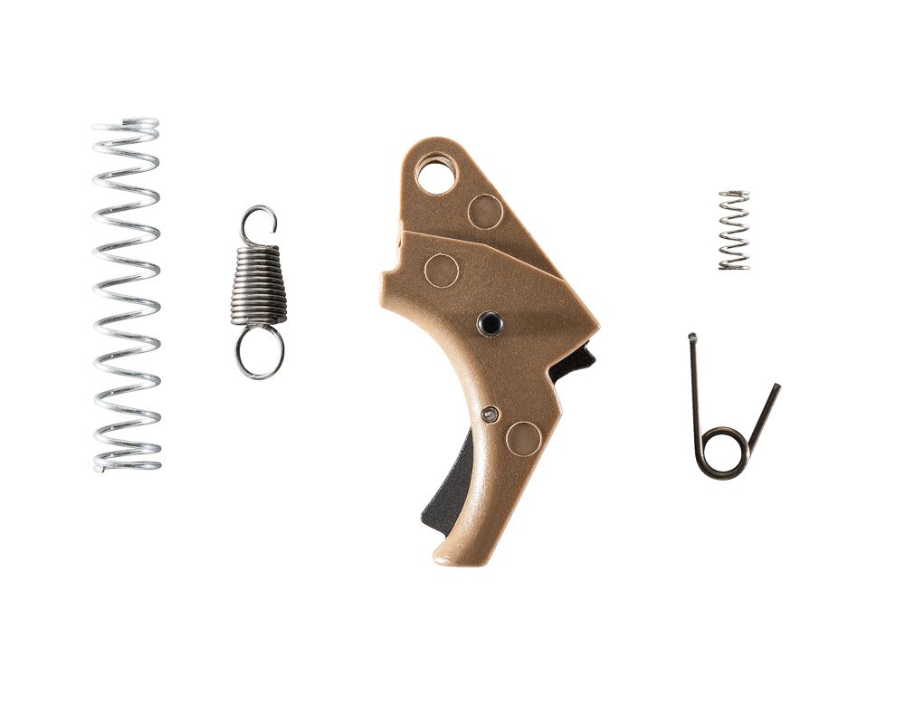 - Smoother uptake — The kit replaces the factory striker block and sear components with polished, hardened steel parts. This eliminates the gritty, stacking feel common in stock SDVE triggers.