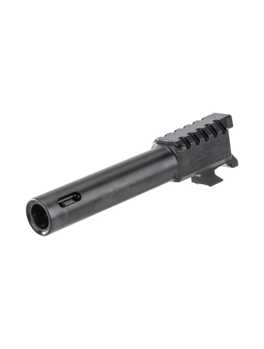 Important fitment note: This is a ported barrel, so your Hellcat Pro slide must have matching port vents cut into the top of the slide. If the slide does not have these openings, the hot gas expelled from the barrel ports has no escape path and will be directed into the polymer frame. This will cause catastrophic damage to the pistol, potentially exploding the frame in your hand. Only use this barrel with a slide designed for ported barrels (such as the factory Hellcat Pro Comp model or an aftermarket ported slide). If your slide is not ported, this barrel is not compatible.