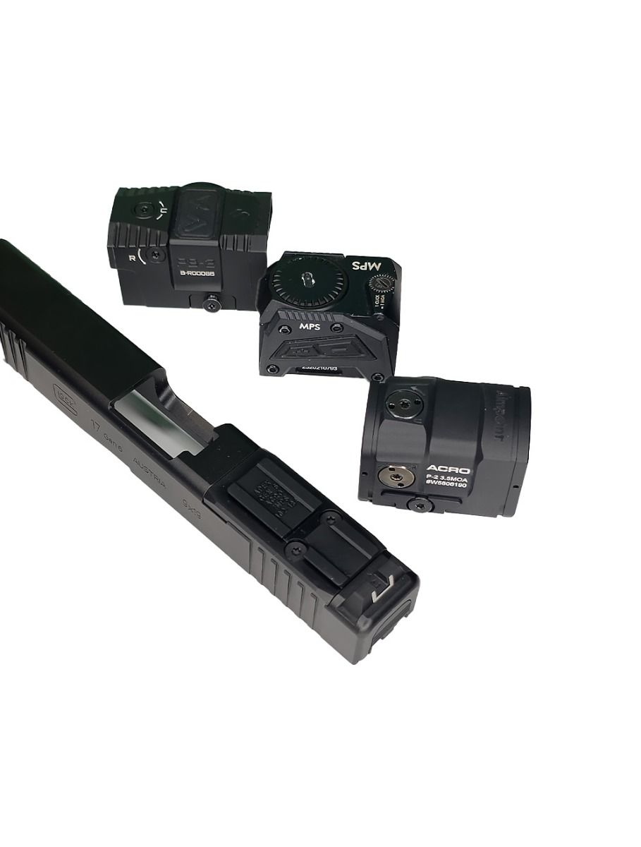 This mount is specifically engineered for slides with the Glock Gen 6 optic cut. It securely mounts any ACRO footprint optic (including Steiner MPS models) to your factory slide without modifications. The package includes two 4mm x 0.7 mounting screws with a pre-applied high-temp thread locker patch — torque them to 15 in-lb for a reliable hold. We recommend cleaning the slide surface before installation to ensure a clean, secure fit.