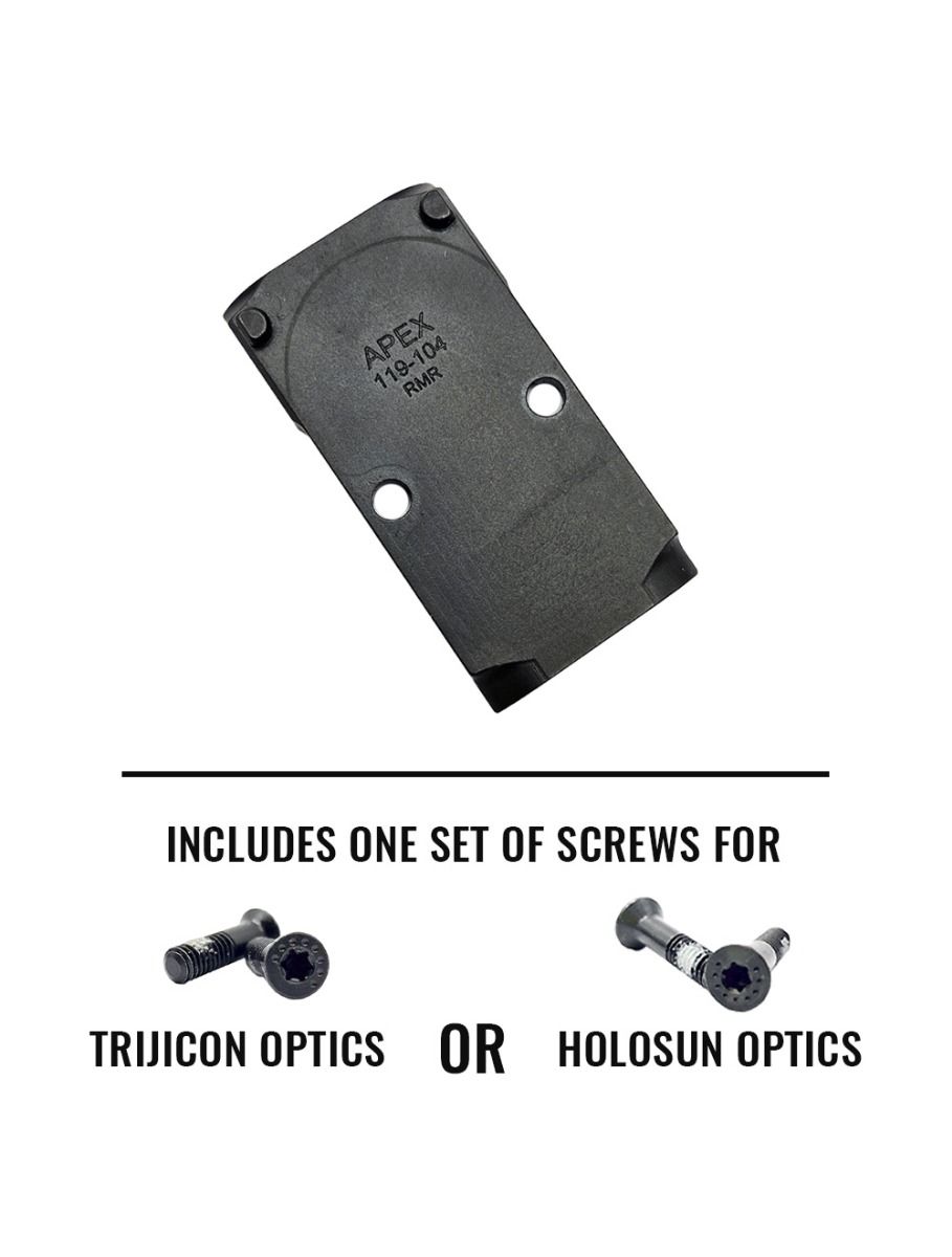 - Accepts optics with an RMR footprint (including Trijicon RMR, Holosun 507C/508T, and similar)