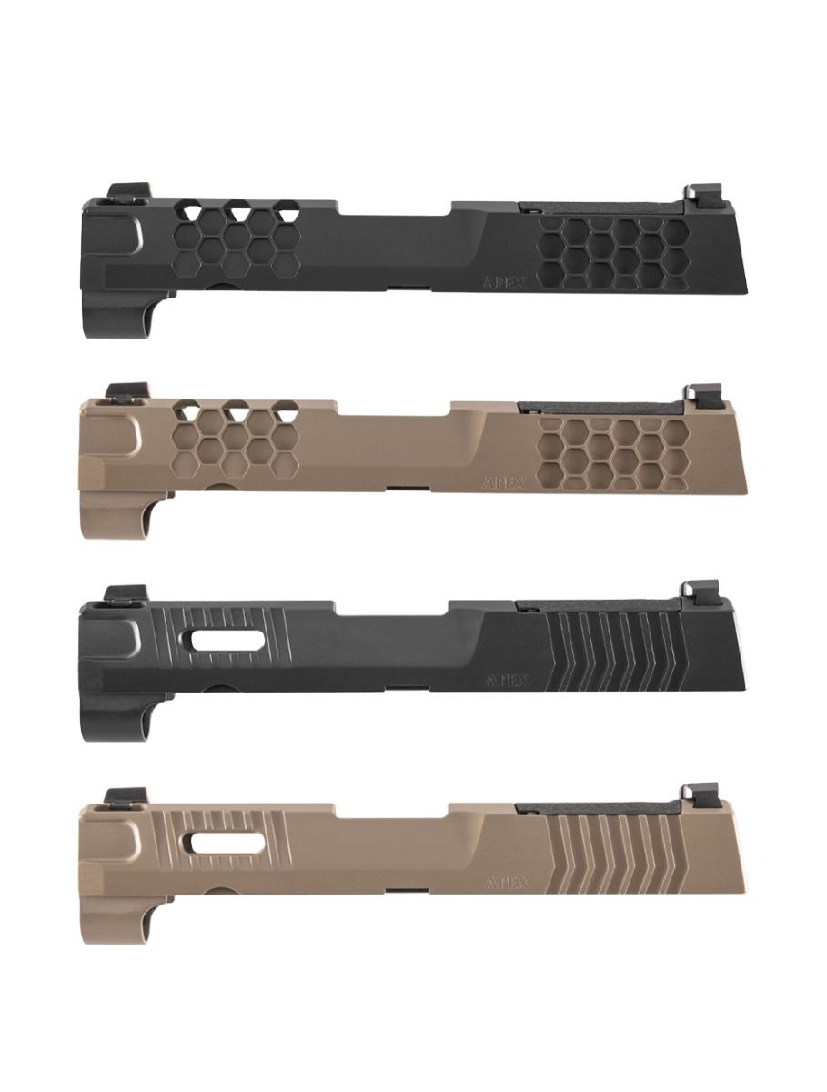 Finish & Construction: All slides feature a Black PVD finish. For FDE slides, a Cera-kote finish is applied to the visible surfaces over the PVD base layer. This provides robust corrosion resistance and a consistent, professional look.