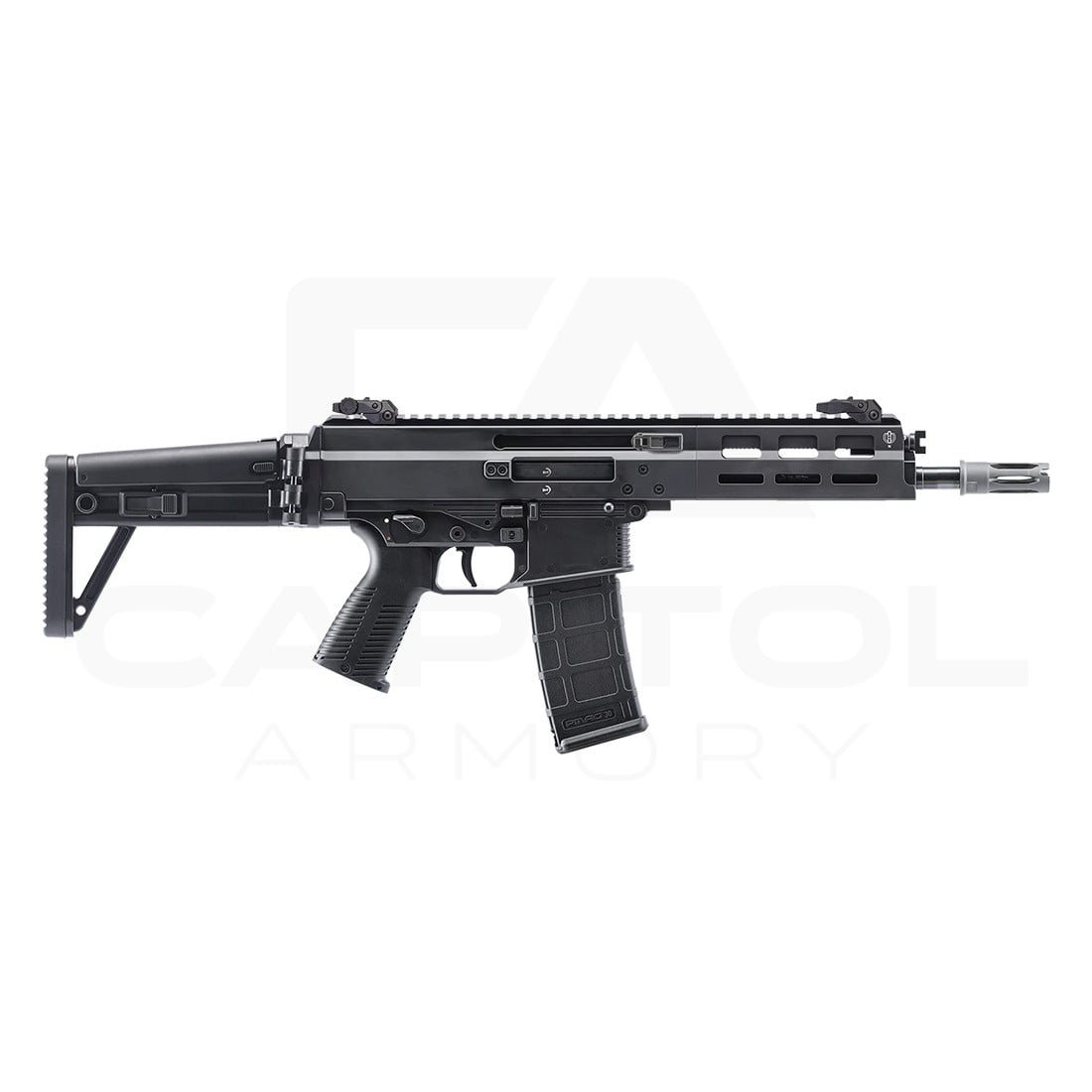 The B&T APC223 SBR represents the pinnacle of short-barreled rifle design from Switzerland’s Brugger & Thomet. Built on decades of military and law enforcement experience, this isn’t just another AR-pattern rifle—it’s a purpose-built system engineered for professionals who demand absolute reliability in compact form. The APC223 utilizes a closed-bolt, short-stroke gas piston system that runs cleaner and cooler than direct impingement designs, particularly important in a short-barrel configuration where heat and fouling accumulate faster. What makes this SBR stand out is its fully ambidextrous controls and the unique hydraulic buffer system that reduces felt recoil by up to 40% compared to traditional buffer systems. This isn’t just marketing hype—shooters immediately notice the difference in follow-up shot speed and overall controllability. The monolithic upper receiver provides exceptional rigidity for optic mounting, while the folding stock mechanism locks up solidly with zero play. B&T’s attention to detail shows in every component, from the precisely machined bolt carrier to the oversized trigger pins that eliminate walking under sustained fire.