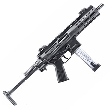 9mm SBRs offer reduced recoil, lower ammunition costs, and compatibility with common pistol magazines. The B&T SPC9 PDW is particularly effective for home defense, range training, and competition use where 9mm's manageable characteristics provide advantages over rifle calibers.