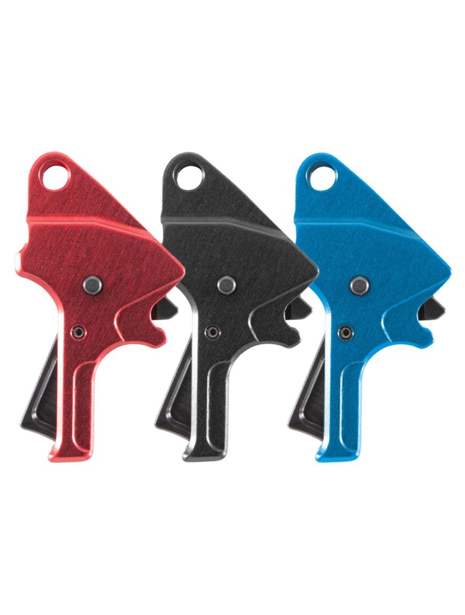 This version features a visually distinct Type 3 trigger. The front corners are chamfered rather than radiused, which provides a narrower feel in the trigger guard without altering the mechanical engagement surfaces. Additional decorative face cuts on the visible sides give it a clean, modern look. Performance remains identical to the classic Apex line — the change is purely aesthetic.