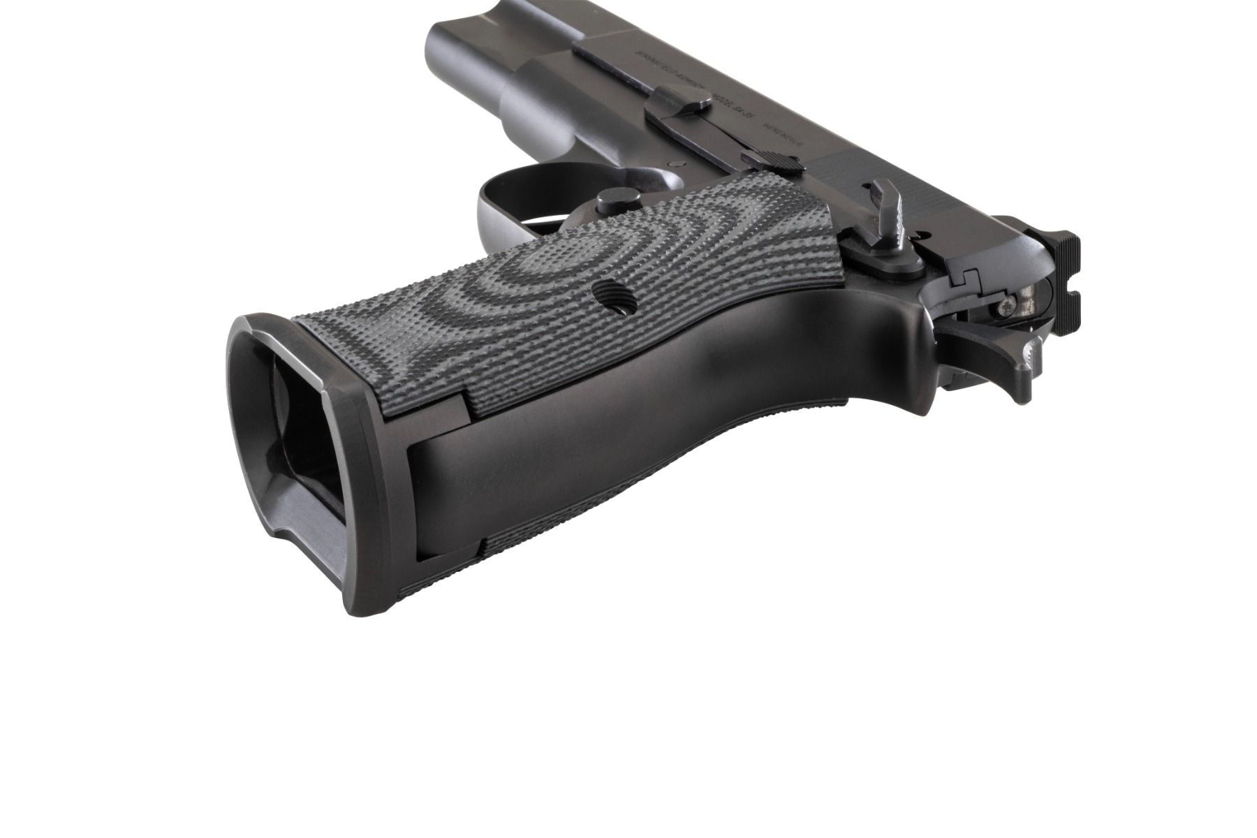 This low-profile magwell is designed specifically for the Springfield SA-35 and Browning Hi-Power, offering a practical upgrade for faster, more consistent reloads. It creates a larger, colosseum-style entry funnel at the magazine well, which helps guide magazines into place with less fumbling and reduces the chance of a missed insertion during a reload. The overall length added to the frame is just 1/4 inch, so you get meaningful assistance without a bulky or oversized profile.