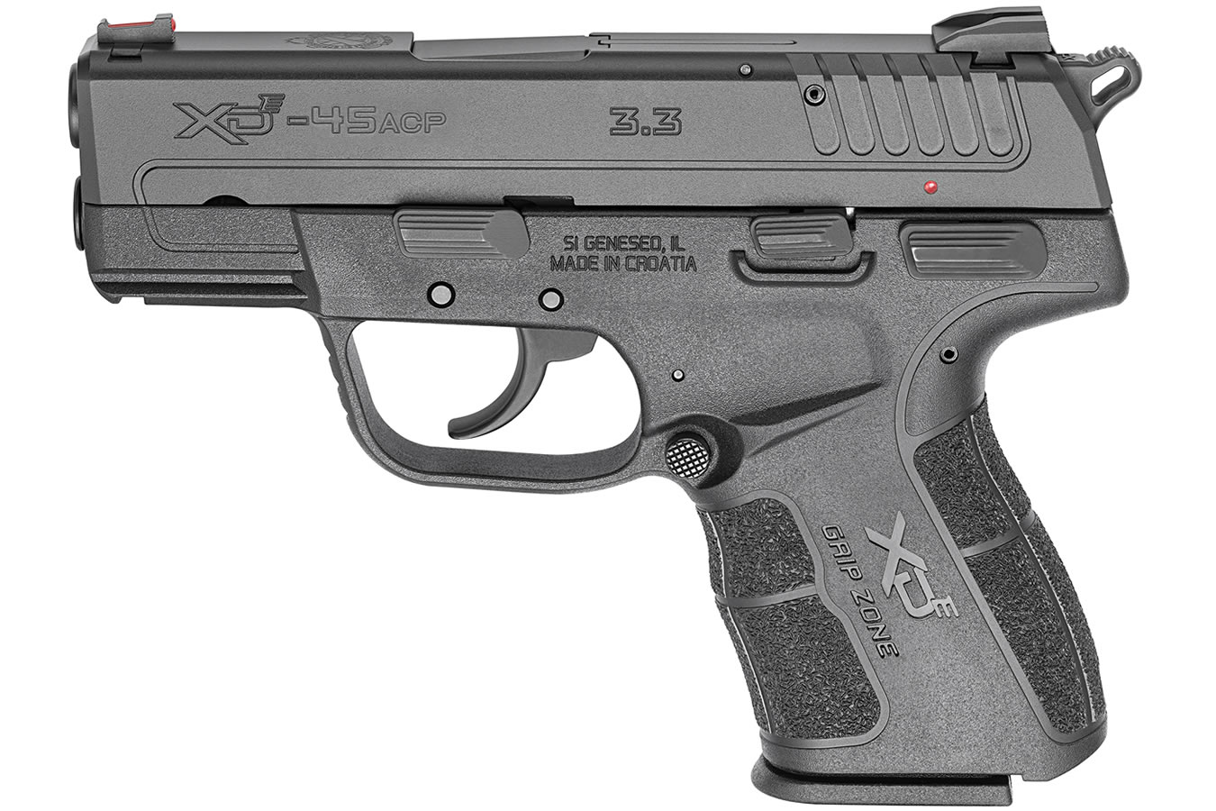 The Springfield XD-E 45 ACP DA/SA Gear Up Package with 5 Magazines and Range Bag is built around a hammer-fired, double-action/single-action trigger system that is rare in the modern .45 ACP compact market. The frame is slim enough for concealed carry, yet the grip texture and beavertail give you a locked-in purchase. Here is what you get in the box: